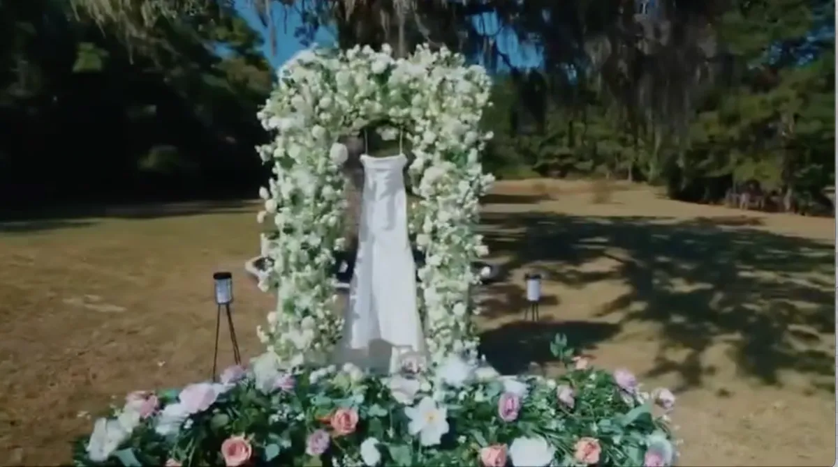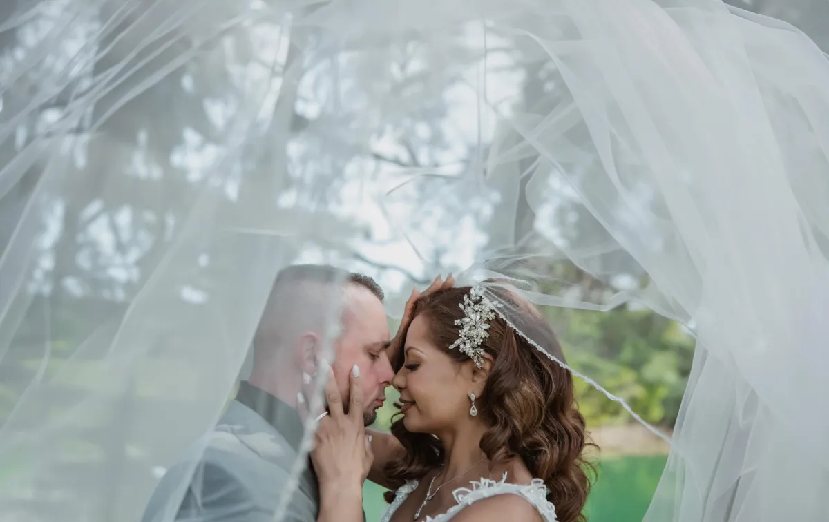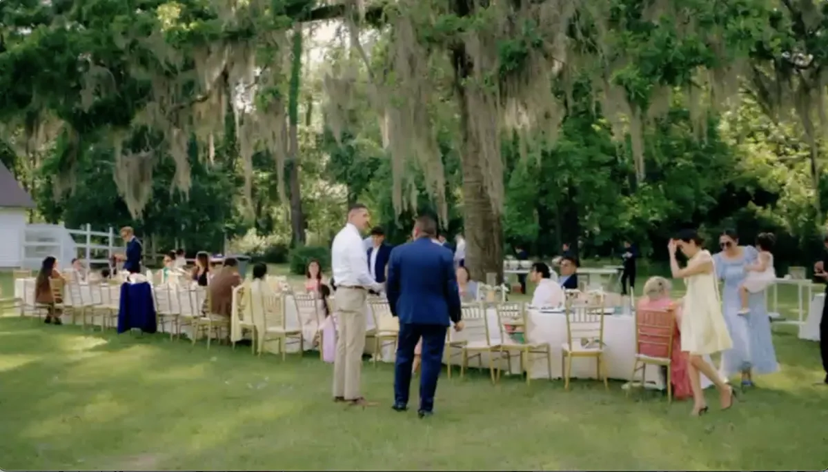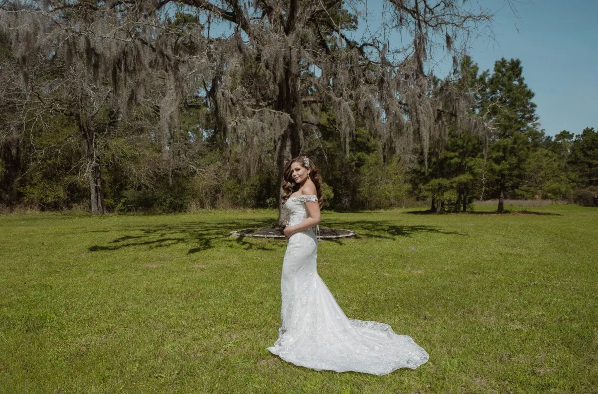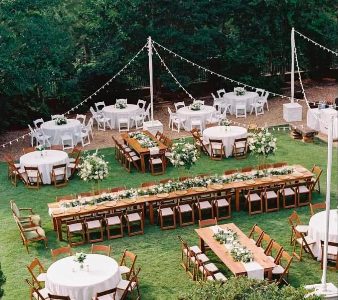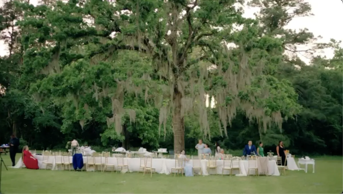 Lush outdoor ceremony sites framed by mature trees for romantic, natural moments.